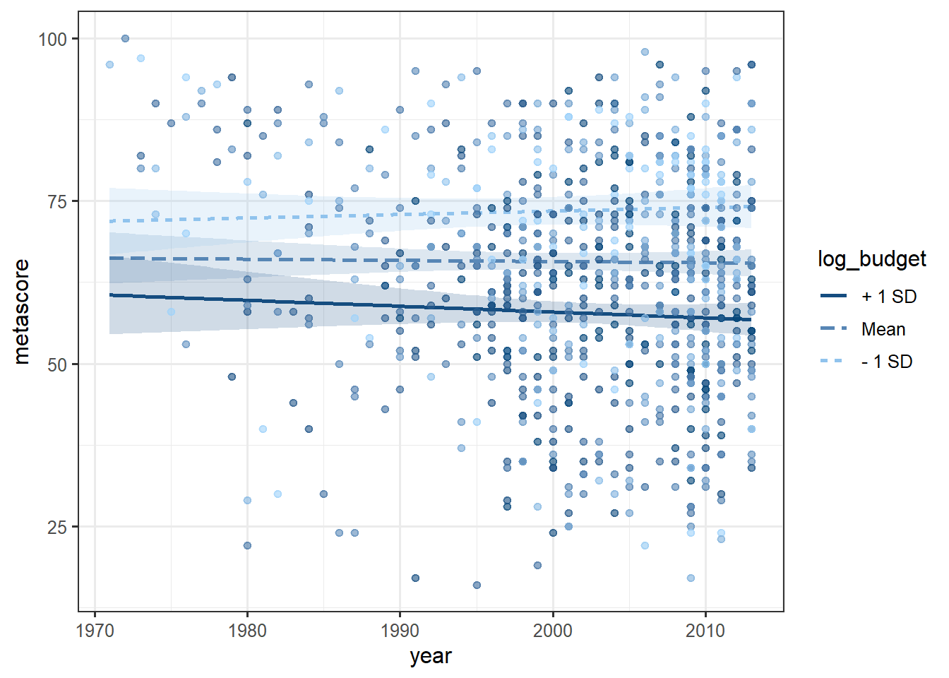 metascore ~ log1p(budget) + log1p(us_gross) + runtime + year,